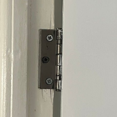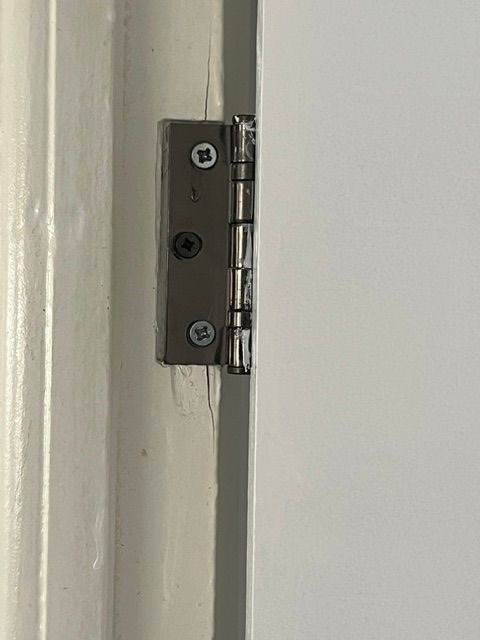 Once the screw holes are damaged hinges can't hold properly-causing doors to drop, stick or misalign