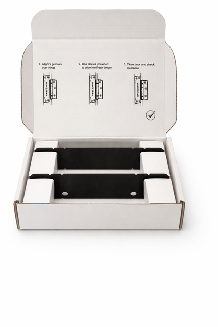HingeSpan is a simple reinforcement plate designed to permanently fix loose hinges