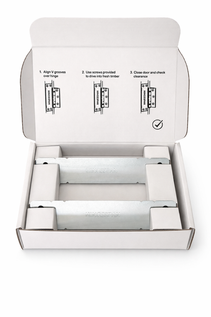 HingeSpan is a simple reinforcement plate designed to permanently fix loose hinges